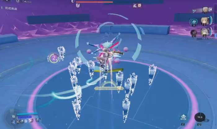 该Boss采用多段式战斗结构。第一阶段以远程言灵攻击为主,可释放多种虚构言灵进行范围压制;部分言灵实体具备可交互性,直接命中即可摧毁,从而削弱其输出节奏。同时,她会召唤“阿帕忒之影”协同作战,需及时清理以降低战场压力。