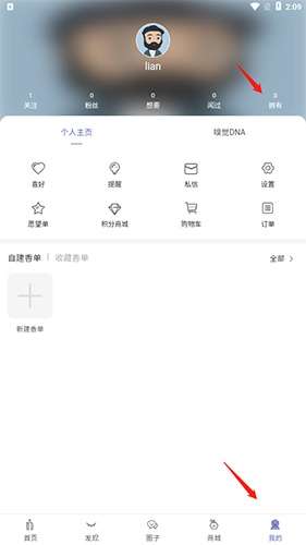 1、打开软件,点击“我的”选项,然后点击“拥有”选项。