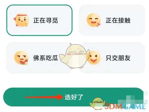 3、选择【正在寻觅】,点击底部的【选好了】,情感状态就设置成功了。