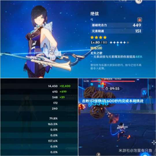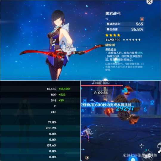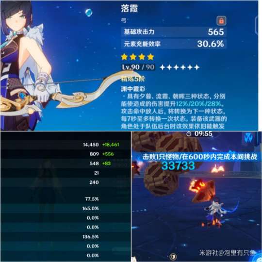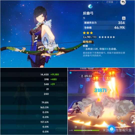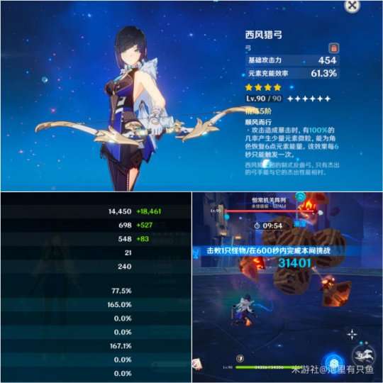 2、充能武器里兼顾伤害和泛用性,西风弓能达到75.26%(搭配生命沙)