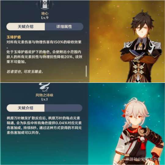 以800精通小毕业万叶为基准,提升是32%元素伤害和40%减抗,钟离则仅提供20%减抗效果。