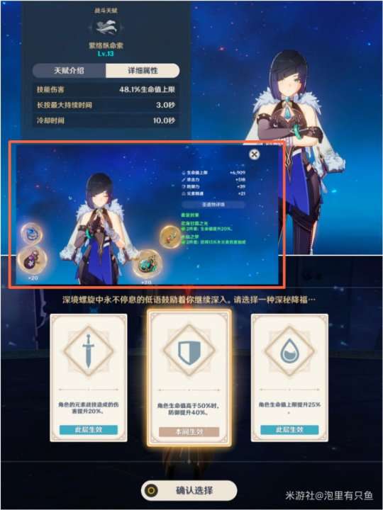 由于Q技能伤害存在浮动(夜兰天赋增伤),所以我们可以测试E技能伤害。反正都是生命值倍率,E技能伤害越高也就意味着Q技能伤害越高。