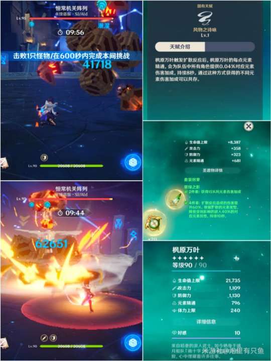 万叶增伤减抗后,伤害由41718提升到62651,增幅50.17%。