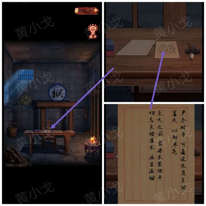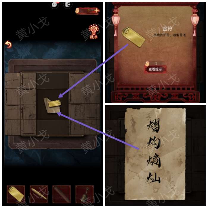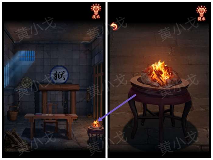 5.点击写有狱字的布,用【兽牙】割开,获得【火钳】