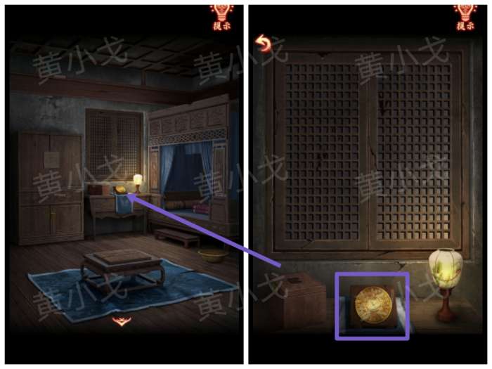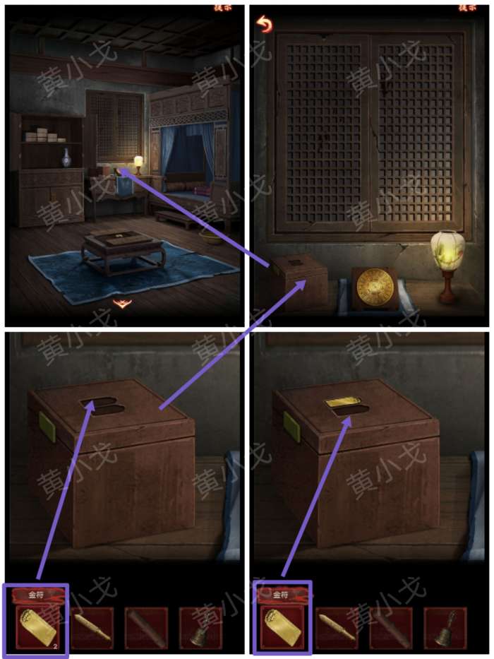 5.点击桌子上的盒子,把两块【金符】放入凹槽处