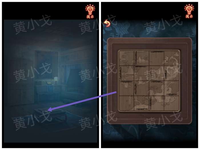 3.点击桌子上的拼图,放入【拼图碎片】,根据过去的拼图线索,完成拼图