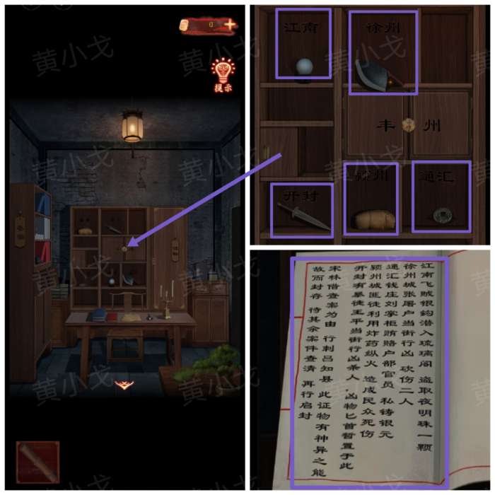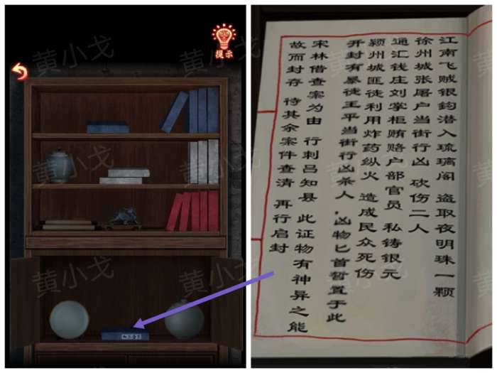 13.点击存放证物的柜子,根据书上的线索,把证物放到对应的格子上