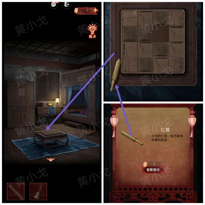 8.点击祠堂大门,用【匕首】割开门上的封条,进入祠堂