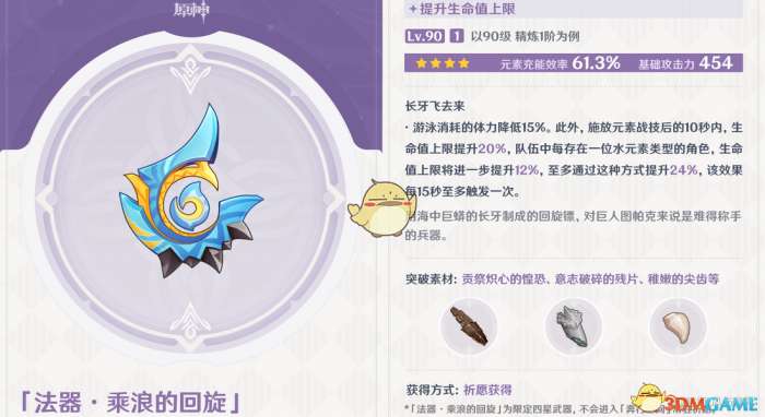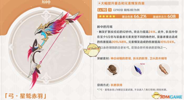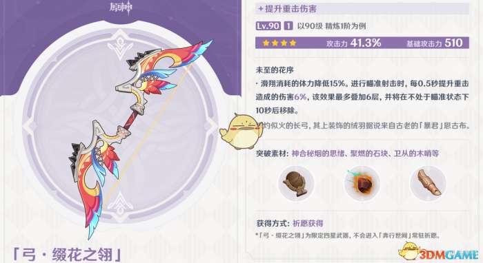 抽取建议:这把弓拯救了很多重击为主的弓角色,当然前提是吃攻击力的,否则多少有点别扭,虽然有些吃生命值的使用也不错。这期抽恰斯卡专武顺便出最好,但没必要为了抽而已,毕竟是四星的。