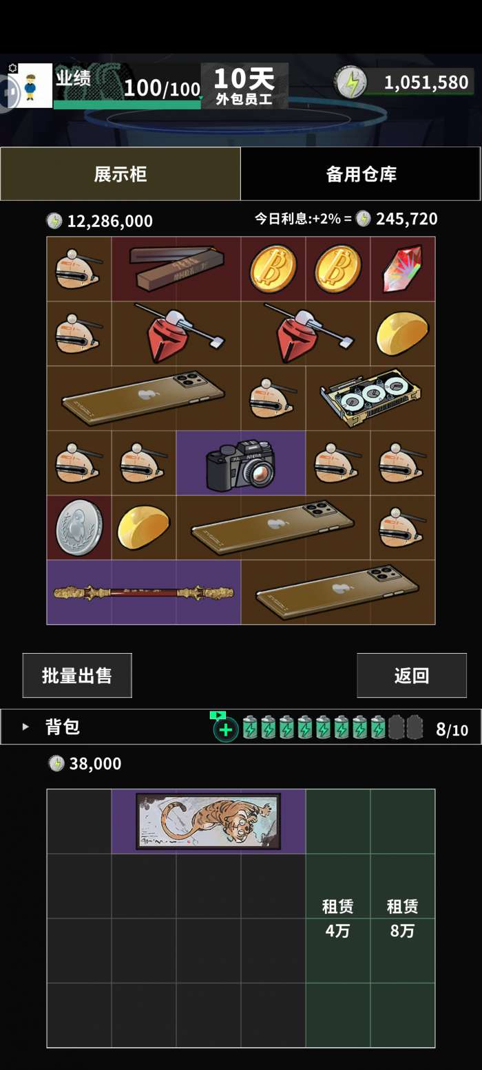 所以,我们前期需要把收集到贵重物品都放在展示柜里,后期放不下了,再把次一级稀有度的物品,放在仓库里,实现利益最大化。