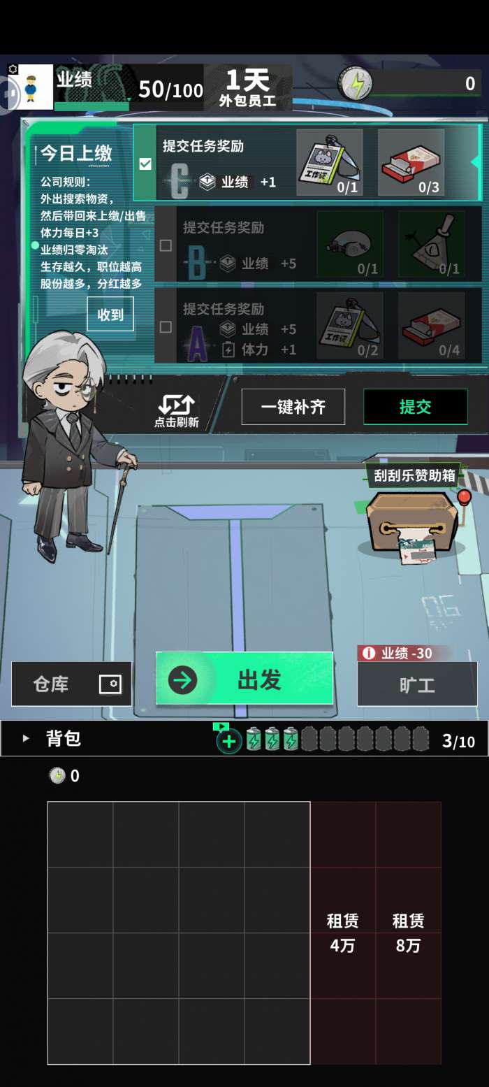 当然,如果在这之前变卖全部家产都完不成任务的话,也只能旷工了。