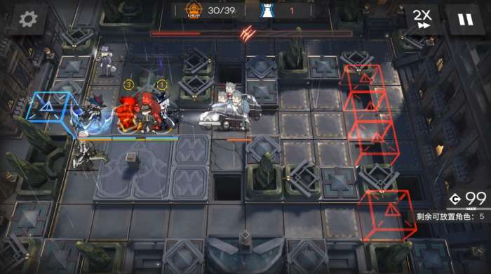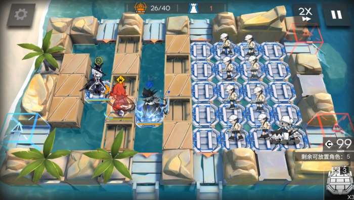 依次部署饼干朝右,歌蒂朝右,塞雷娅挂机。塞雷娅那边打的慢