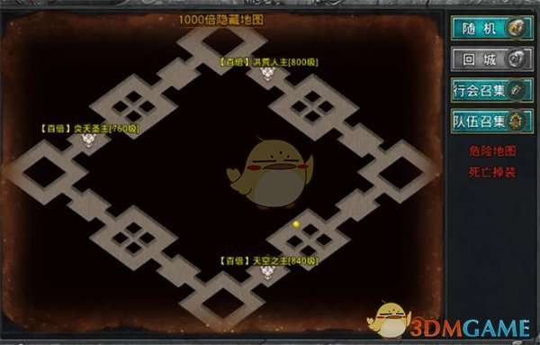 游戏打怪的时候也会有几率爆出百倍千倍地图的隐藏券,使用后可以进入隐藏地图两个小时。在隐藏地图里,BOSS的位置会直接标出,也会有十倍及精英怪等怪物常驻。