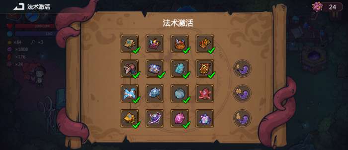 最后的法术激活方面,除了第一竖列,其法术包都要激活一定数量才能继续解锁,所以我会在每行都推荐两个。