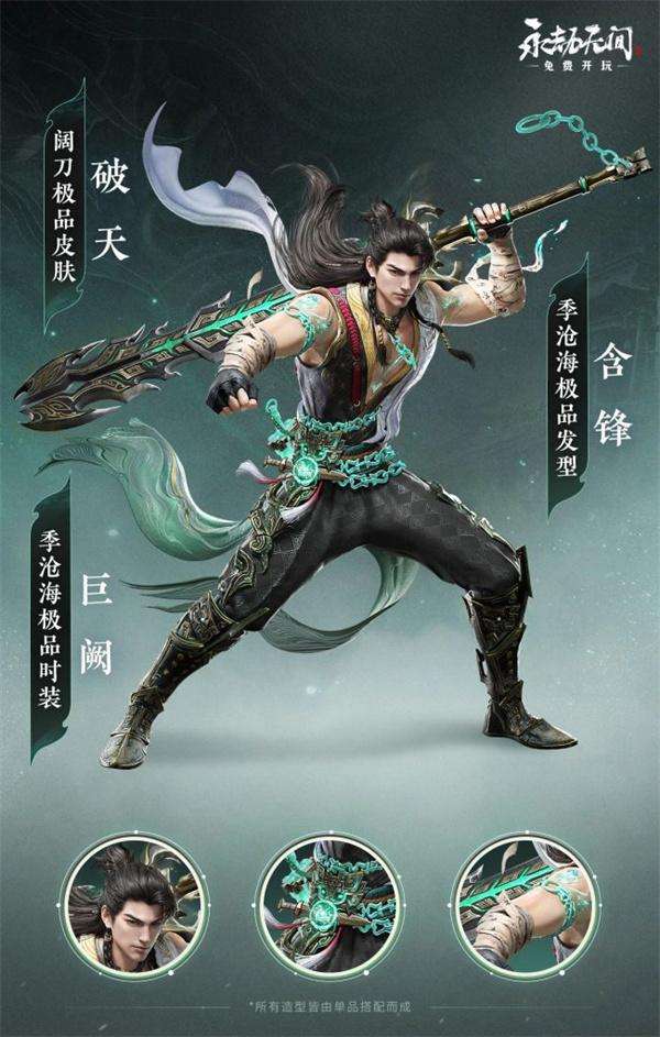 锁链遍缚全身,腰部加以形似春秋时青铜器的饰品,展现传说中坚硬厚重的神兵威力,也如季沧海本人一般,坚毅强大。