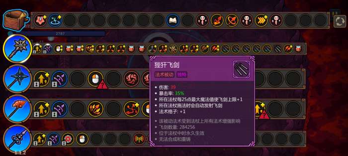 选用施法间隔和冷却0.4s以下的法杖,也可以用超载散射保证快速触发,同时超载散射是搭配中的一个必须要的核心所在,到后期飞剑数量叠起来,却打boss很久打不死,非常刮痧,飞剑触发很久都触发不完,那就得赶紧上多个超载散射,他对秒伤的提升非常之高,可以让你的飞剑快速大量的触发