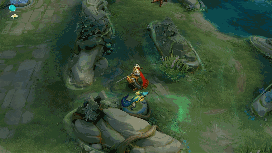 丝绸之路·拨云的出场动画是绿色特效,野区野区会进行小幅地形变化,受到英雄攻击时会获得额外护盾庇护。如下图展示,三处地形都有所变化。