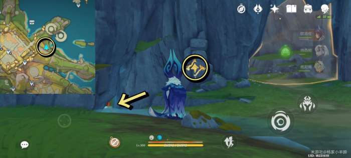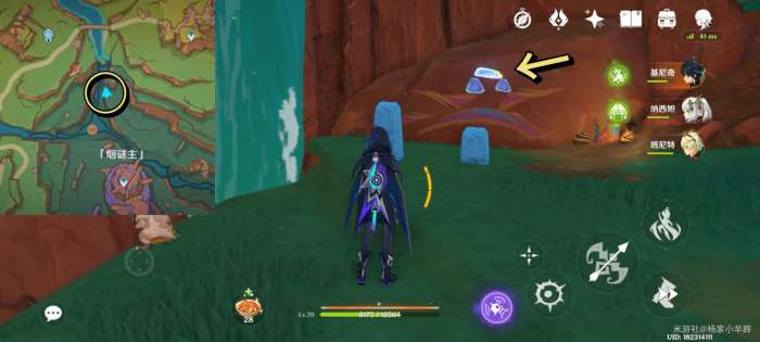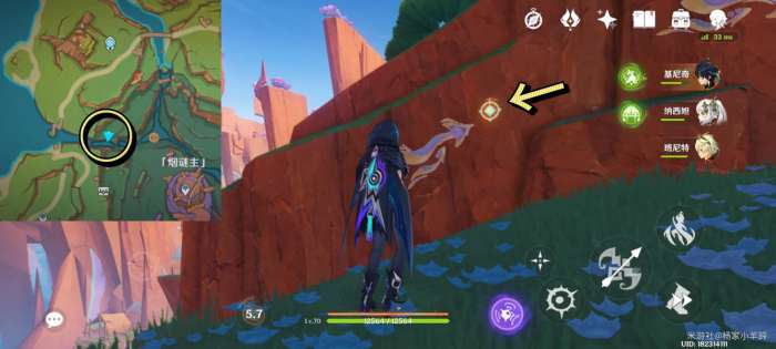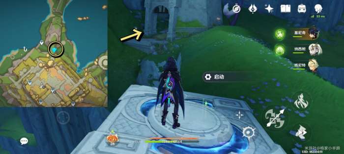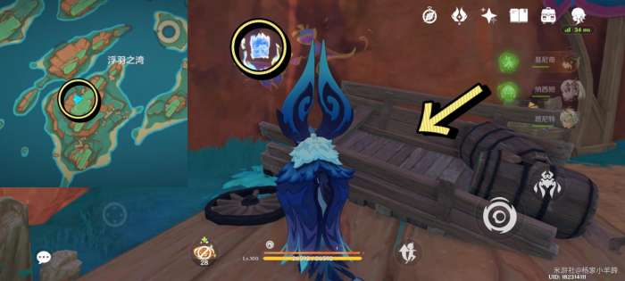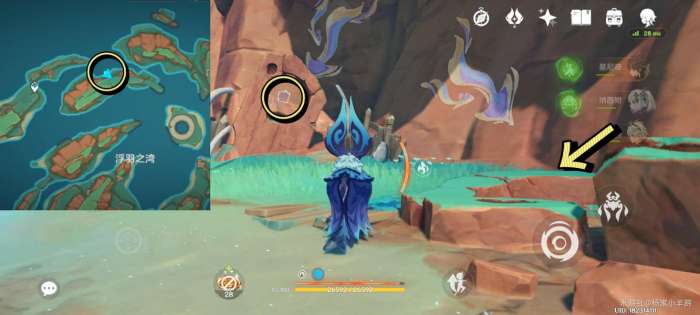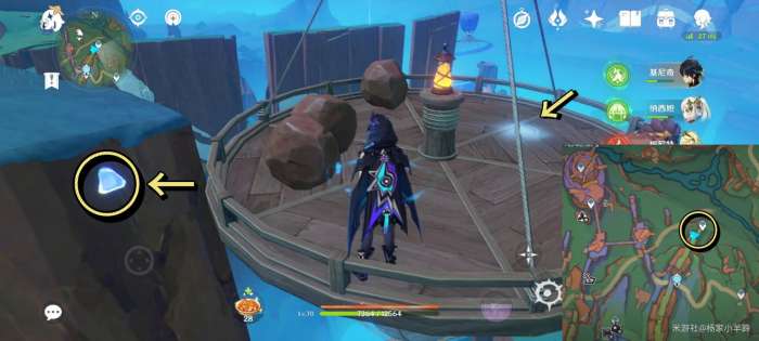 2. 击打标靶:来到图中位置,击破4次箭头处的游光标靶,即可开启奇馈宝箱(灵性与密封)
