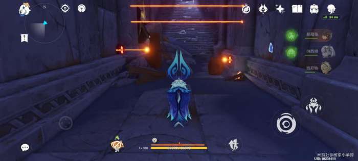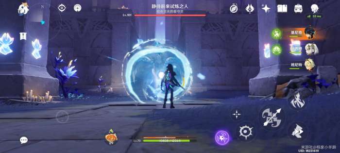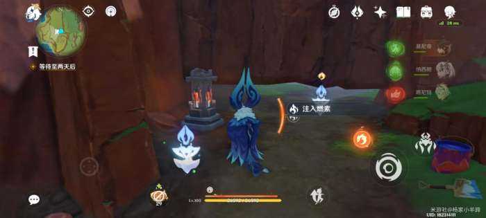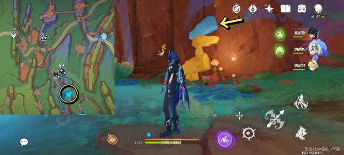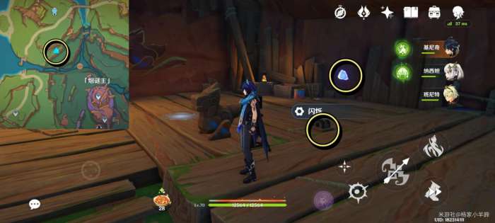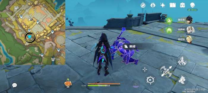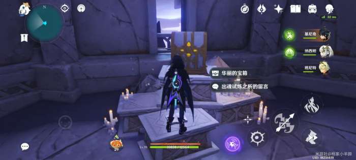2.限时开启宝箱挑战:来到图中位置,开启机关【记录用秘源哨机】,附身鳍游龙通过游隙灵道30s内完成挑战,开启普通宝箱*1