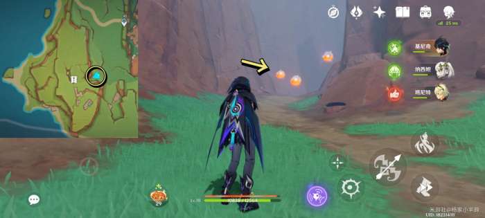来到图中位置,把顽皮幻写灵送回家(顺着风场飞上去捕捉)
