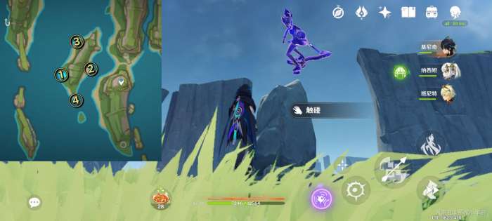 5. 触碰再击败后出宝箱:来到图中位置,触摸魔物后跟随紫色鸟群的方向走,一共触碰4次魔物后,击败即可获得精致宝箱*1