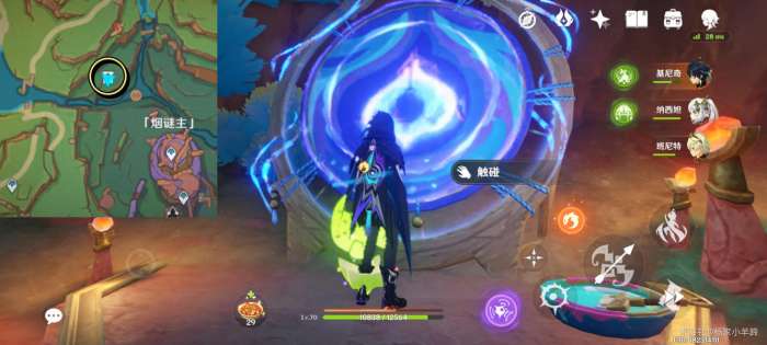 跳下洞口(洞内一个火神瞳),点击触摸,进入试炼所