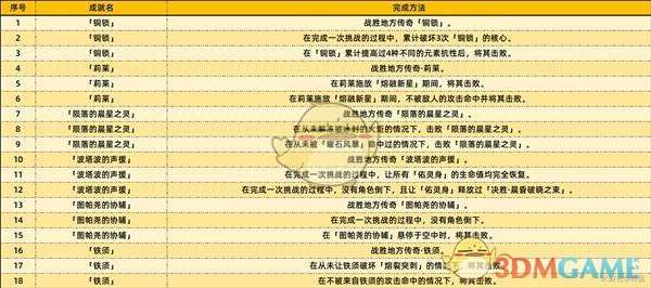 | 「铜锁」 | 在「铜锁」累计提高过4种不同的元素抗性后,将其击败。 | 20 |