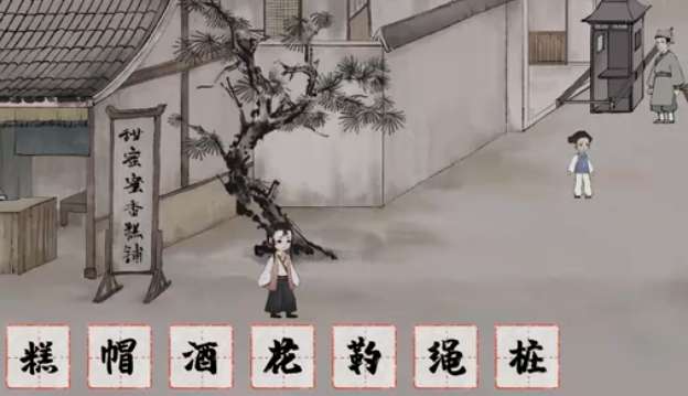 从糕铺旁的树左边获得〔花〕,右边获得〔绳〕〔桩〕〔靮〕