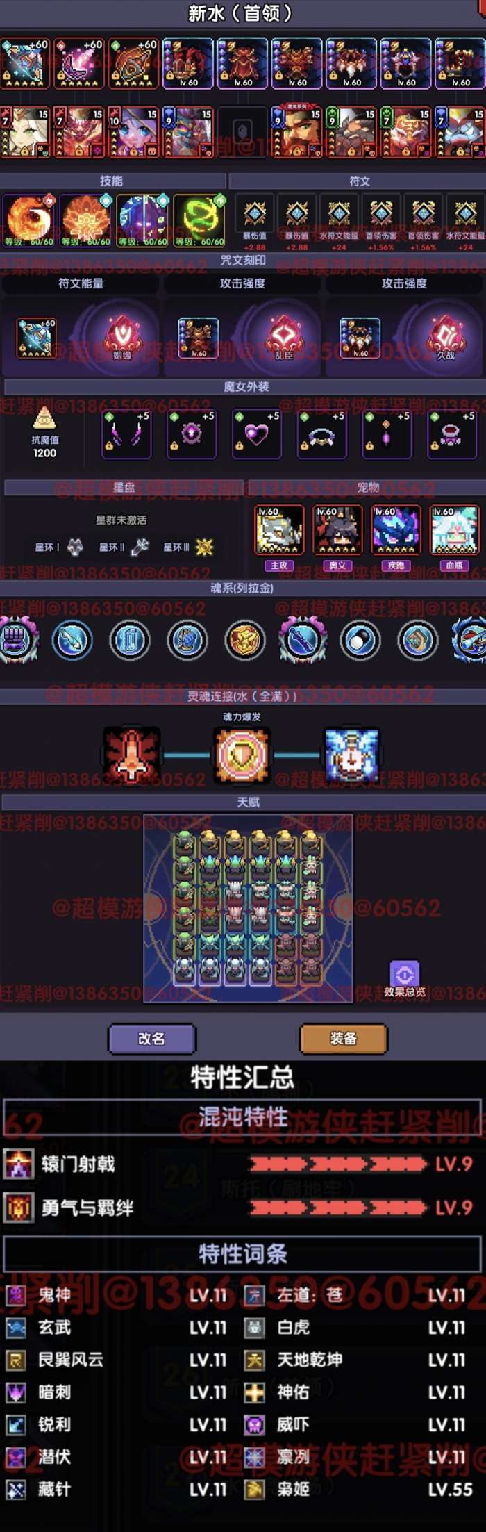 ps:装备选择、混沌暗金词条都要根据场景来切换。“枭姬”55级即可。在刷词条时,优先把词条凑齐,再去把“枭姬”等级拉满,剩下再去不补“天地乾坤”的词条。
