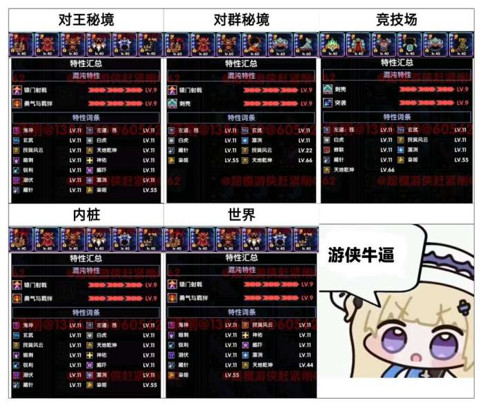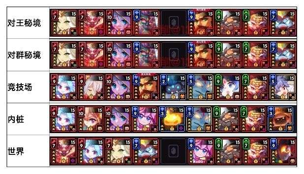 先把“对王秘境”及“对群秘境”两个板块做好,再去做“竞技场”及“世界组队”板块,“内桩”板块仅适合网页活动(不定期开)冲分点的时候再做