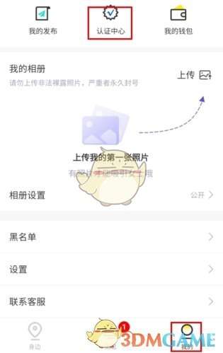 1、在糖果空间我的页面中点击认证中心按钮;