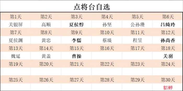 每天的点将台前期自选比较重要,附图是建议选择顺序