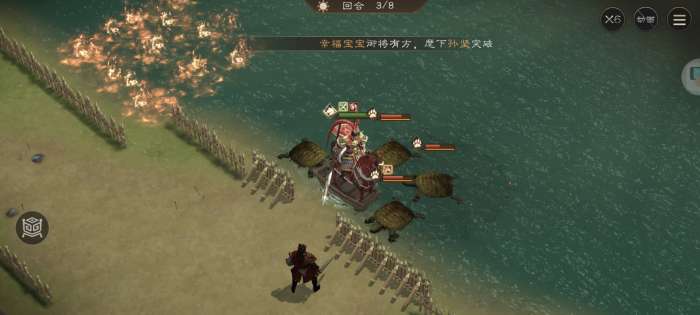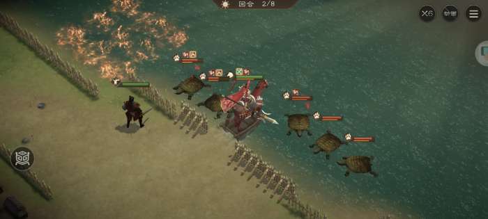在《新三国志曹操传》周瑜无双试练第二关“进攻秣陵”中,玩家需使用周瑜与吕布配合对抗海龟。开局吕布卡住关键位置阻挡海龟前进,周瑜适时释放火烧与技能,吕布则以反击为主要输出手段,通过稳健防守即可无回合限制通关。