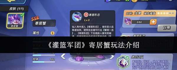 灌篮军团寄居蟹怎么玩?今天小编就带来说说灌篮军团寄居蟹怎么玩。寄居蟹这个角色,玩起来真的是很有意思,特别是它那技能【寄居形态】,真是个大亮点。简单说就是它能变成一个小小的形态,跑得飞快,任何敌人的普攻都打不到,当然,敌人的技能还是能打到你,所以要小心点。最厉害的是,变小之后你能直接上去把敌人夹碎,一击必杀,爽得不行。