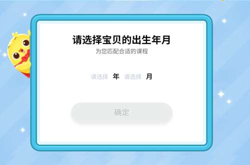 下载叫叫识字APP进入之后,看到有一个小黄鸡,点击开启阅读,然后需要选择宝贝的出生年月。