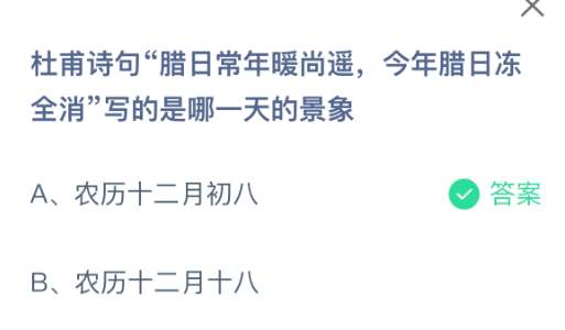 以上就是杜甫诗句“腊日常年暖尚遥,今年腊日冻全消”写的是哪一天的景象?支付宝蚂蚁庄园2026年1月31日答案最新,更多相关攻略,请关注pk游戏网更新!