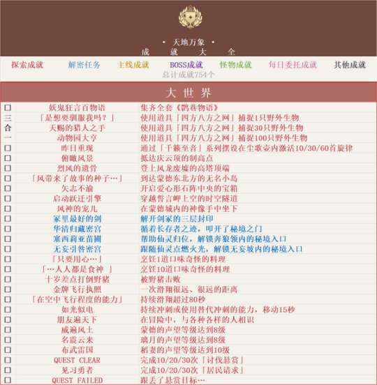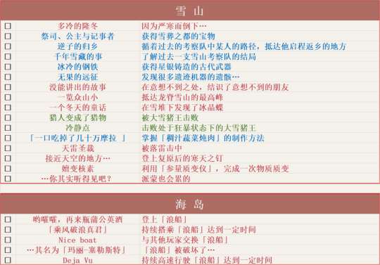 大家好呀,这篇内容汇总一下截止到5.2版本,全部的成就