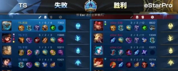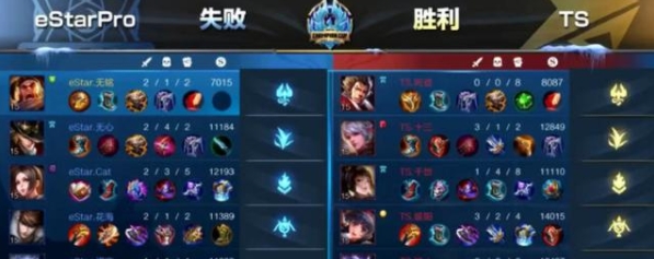 中期几波团战也是eStarPro都取得了一定的优势,他们的人头也领 先,但是在推进中站位不佳,被TS张飞一个控制打崩,TS直接反打连杀eStarPro三人,之后继续追击团灭对手后一波攻上高地点爆水晶,大 比分扳成1比1。