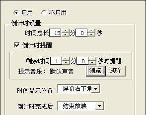 7、在这可以选择启用倒计时,设置倒计时长、提醒声音、显示方式等功能,设置完成后,“确定”。