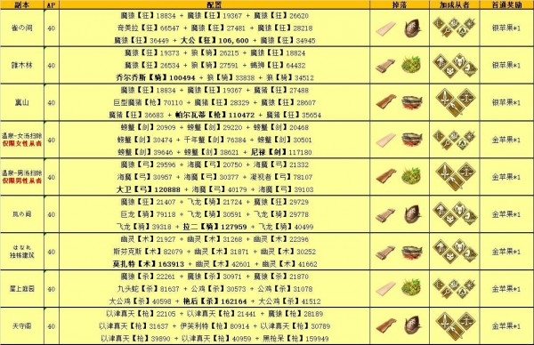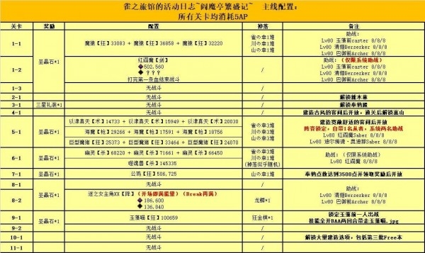 本次活动礼装“银雪的女神们”提供+1/+2的全木材掉落加成,每个职阶对应某一种木材+1的掉落加成,红阎魔全+2,其他倍卡从者全+1