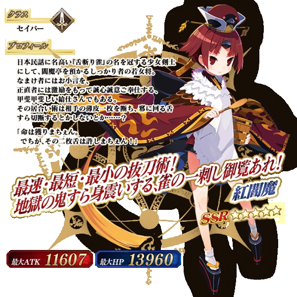 效果:自身的Quick指令卡性能提升6%(8%) & Arts指令卡性能提升6%(8%)& Buster指令卡性能提升6%(8%)& 以NP达到30%(50%)的状态开始战斗