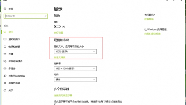 进桌面右键画面设置 显示100%不要调高(Win10)