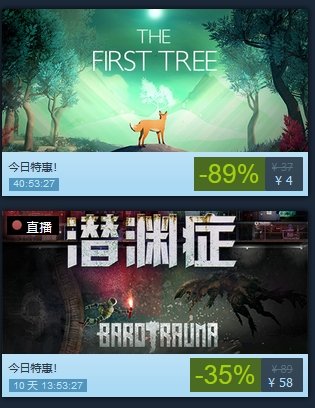 目前,《The First Tree》和《潜渊症》已经在Steam商城开启特惠,感兴趣的玩家可以点击下面的链接进行购买。