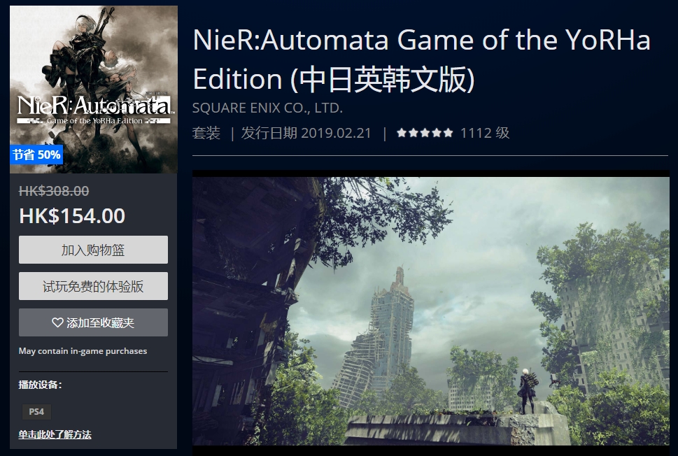 PS4港服《尼尔:机械军团》商店页面:→点我跳转