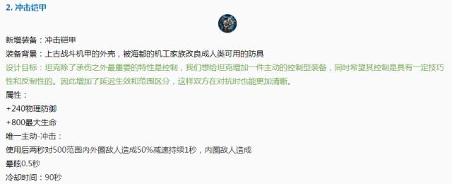 血魔之怒,俗称血手,修改了,被动改成了主动,特别契合东皇太一,可以试一下。新增了装备冲击铠甲,自带主动技能,有眩晕效果,虽说是坦克转属,但如果给到马可波罗也是有效的。辅助装备集体调整,具体自己进游戏看,然后新增了一件辅助装备,名叫星泉,可以分摊伤害,如果再配上明世隐,那射手岂不是五敌了?