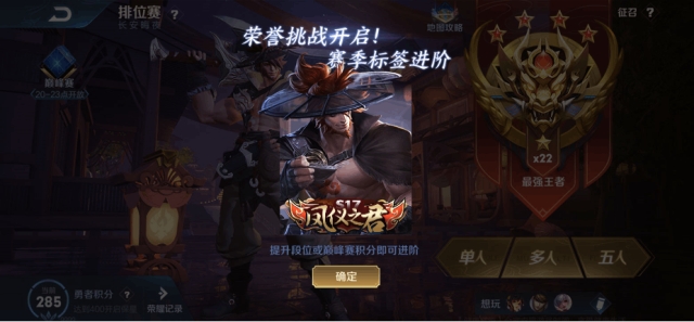 刚更新新赛季,记得不要去排位,会影响心情。段位差距缩短,但实力差距没缩短。如果实力不够,你会毫无游戏体验可言。