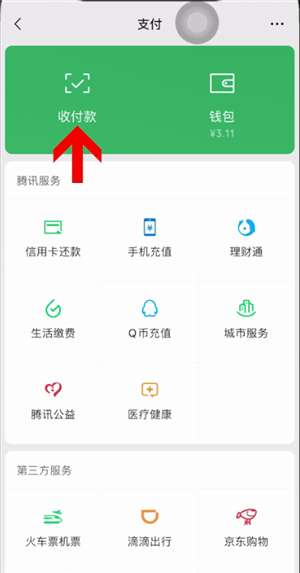 首先打开微信app,点击我的选项,再点击支付功能,找到收付款,点击进入。