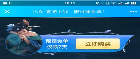 1、活动期间在手Q内上线的“买皮肤抽免单”活动页面成功购买“小乔-青蛇“皮肤,即可有机会参与抽奖。具体步骤如下: