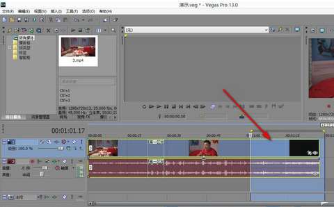 1、打开vegas,找到——项目媒体,先将素材鼠标拖拽至时间轴上。