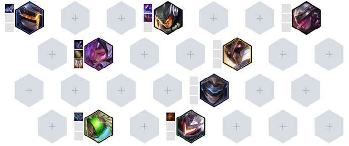 源计划是发育流阵容,早期存钱就完事了,不要想着在早期D牌,阵容核心是破法刀妹,早期打工存钱,等到七人口以后再补质量,最佳的状态是在七人口补出两星刀妹,基本质量会远远的优于其他的阵容。如果到七级血量保持在80+,可以直接升八D牌找艾克让六源进入成型的装备。在阵容的站位方面,前场放抗伤英雄,主要是为了给双破法刀妹、锤石拉开输出空间,如果早期装备上的好,可以考虑做出静止法衣给到蕾欧娜,开战先沉默一波对手,这样永动流的阵容启动也会变迟缓。后排就放卢锡安、EZ双枪打输出,艾克挂边。